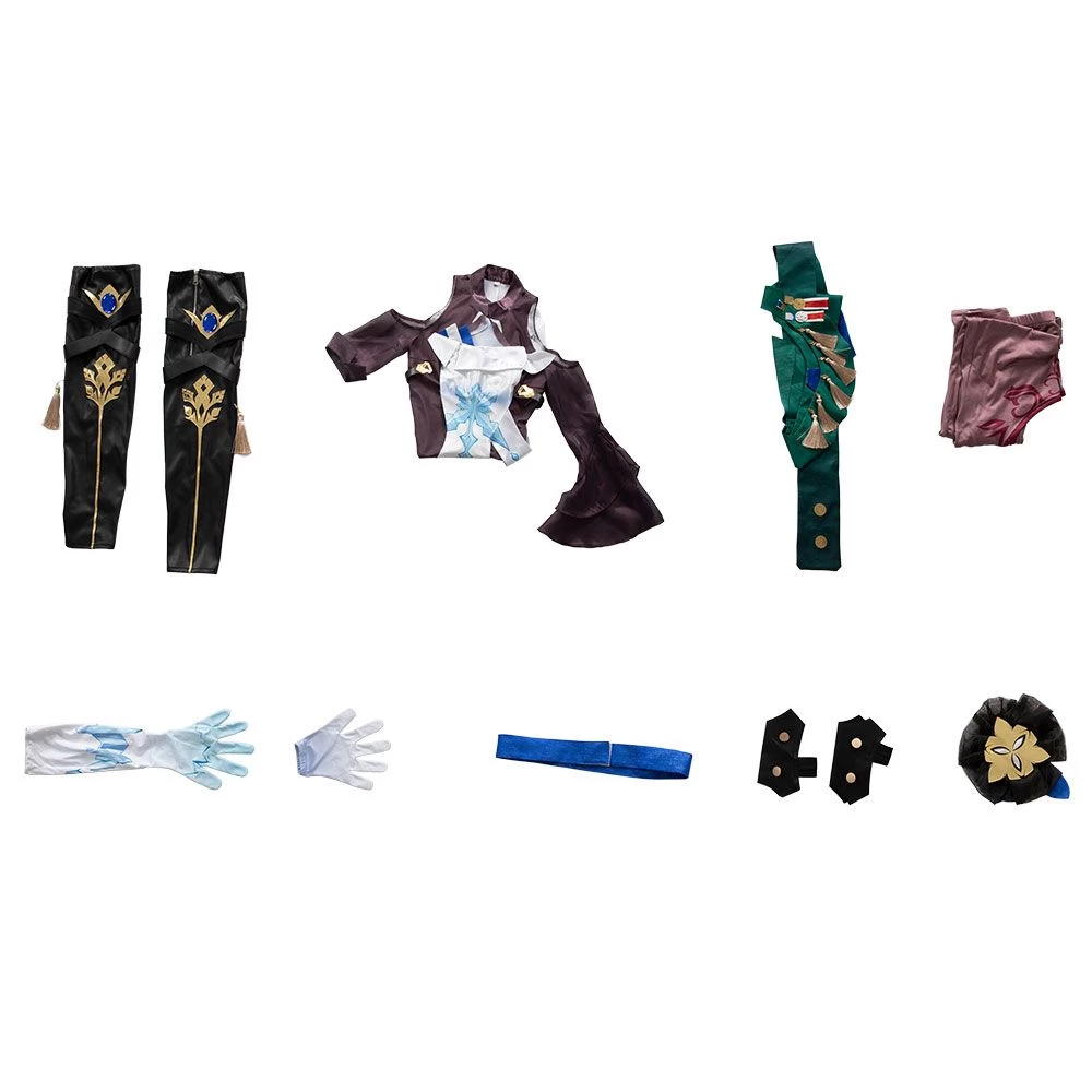 - Package Includes: Shawl*2, Gloves*2, Outer skirt, Pantyhose, Leggings*2, Chest pendant, Headwear, Ankle*2